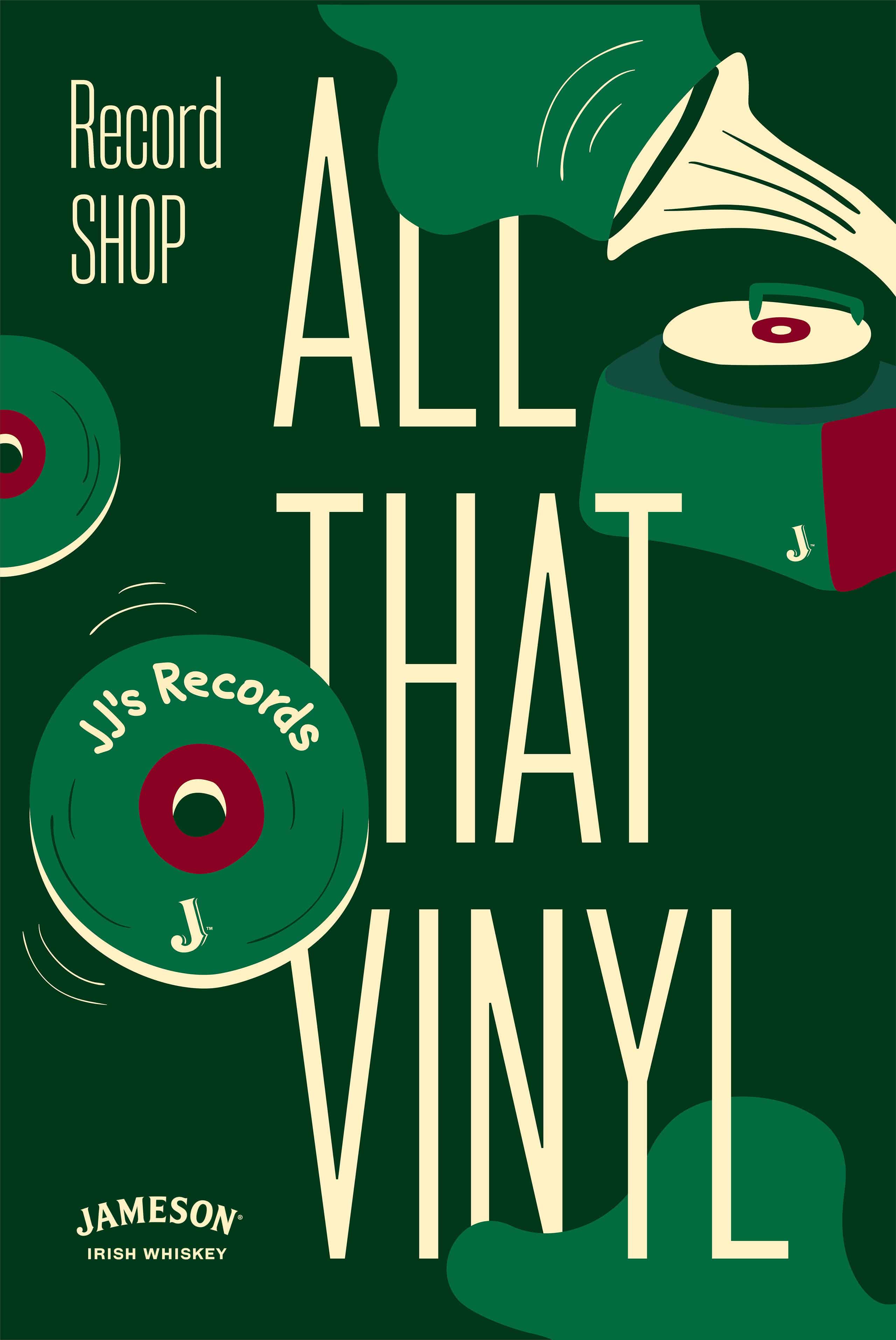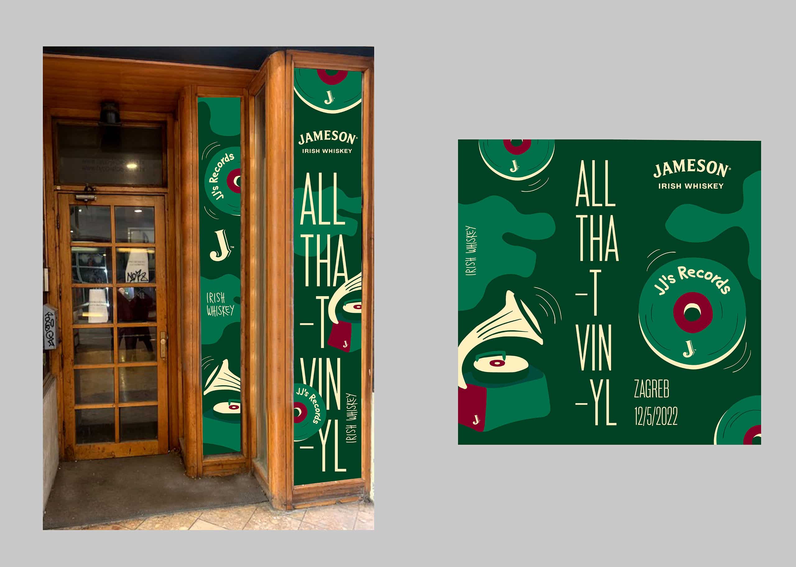 The idea of revitalizing the legendary jazz club as a record store required a complete visual identity. We placed the Jameson brand in context and developed a comprehensive visual system for branding the interior and exterior of the vinyl shop, as well as communication materials for digital and print media.